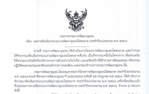 ผลการคัดเลือกหน่วยงานพัฒนาชุมชนใสสะอาด ประจำปี 2568 (1).pdf