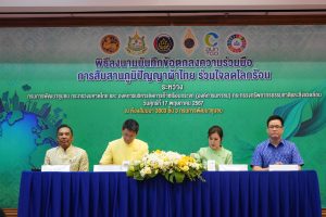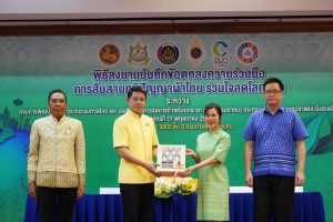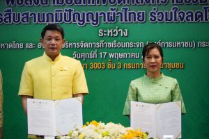 วันที่ 17 พ.ค. 67 ณ ห้องสัมมนา 3003 ชั้น 3 กรมการพัฒนาชุมชน นายสยาม ศิริมงคล อธิบดีกรมการพัฒนาชุมชน และนางณัฐริกา วายุภาพ นิติพน รองผู้อำนวยการองค์การบริหารจัดการก๊าซเรือนกระจก รักษาการผู้อำนวยการองค์การบริหารจัดการก๊าซเรือนกระจก ได้ลงนามบันทึกข้อตกลงความร่วมมือ “การสืบสานภูมิปัญญาผ้าไทย ร่วมใจลดโลกร้อน” ระหว่างกรมการพัฒนาชุมชน และองค์การบริหารจัดการก๊าซเรือนกระจก (องค์การมหาชน) โดยมีนายพงษ์ภาณุ เศวตรุนทร์ ประธานกรรมการองค์การบริหารจัดการก๊าซเรือนกระจก นางประเสริฐสุข เพฑูรย์สิทธิชัย ที่ปรึกษาปลัดกระทรวงมหาดไทย นายวิฑูรย์ นวลนุกูล นายวรงค์ แสงเมือง รองอธิบดีกรมการพัฒนาชุมชน นางอรจิรา ศิริมงคล ประธานชมรมแม่บ้านพัฒนาชุมชน นายรองเพชร บุญช่วยดี รองผู้อำนวยการองค์การบริหารจัดการก๊าซเรือนกระจก นางสาวณัฐนิช อินทสระ ผู้อำนวยการสำนักส่งเสริมภูมิปัญญาท้องถิ่นและวิสาหกิจชุมชน คณะผู้บริหารกรมการพัฒนาชุมชน ข้าราชการ ภาคีเครือข่าย และสื่อมวลชน ร่วมเป็นสักขีพยาน โดยขอบเขตความร่วมมือเพื่อส่งเสริมและสนับสนุนให้กิจการผ้าไทยในระดับชุมชน และท้องถิ่นพัฒนาผลิตภัณฑ์ผ้าไทย ที่เป็นมิตรกับสิ่งแวดล้อมและลดปริมาณการปล่อยก๊าซเรือนกระจก ส่งเสริมและสนับสนุนให้กิจการผลิตภัณฑ์ผ้าไทยในชุมชนหรือท้องถิ่นยื่นขออนุญาตการใช้เครื่องหมายรับรอง Carbon Footprint ของผลิตภัณฑ์ที่ดำเนินงานโดยองค์การบริหารจัดการก๊าซเรือนกระจก (องค์การมหาชน) โดยในการขับเคลื่อนการดำเนินงานที่ผ่านมา มีผลิตภัณฑ์ที่ได้รับเครื่องหมายรับรอง Carbon Footprint ของผลิตภัณฑ์ จำนวน 20 ผลิตภัณฑ์ และในระยะถัดไป จะมีการร่วมมือกันในการทดสอบการลดการปล่อยคาร์บอนไดออกไซด์ จากการย้อมสีธรรมชาติของผ้า 4 เส้นใย ไหม ฝ้าย ใยกัญชง และซาติน เพื่อเปรียบเทียบการปล่อยคาร์บอนไดออกไซด์ ระหว่างสีเคมีและสีธรรมชาติ ว่าสามารถลดคาร์บอนไดออกไซด์ได้เท่าไหร่ และสนับสนุนการดำเนินกิจกรรมเพื่อพัฒนากิจการผ้าไทย