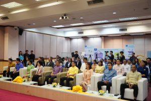 นายสยาม ศิริมงคล อธิบดีกรมการพัฒนาชุมชน กล่าวว่า กรมการพัฒนาชุมชนมีพันธกิจในเรื่องของการส่งเสริมต่อยอดภูมิปัญญาท้องถิ่นเพื่อให้เกิดผลผลิตในเชิงเศรษฐกิจฐานรากแก่พี่น้องประชาชนชาวไทย สืบเนื่องยาวนานกับการลดใช้สารเคมีในการผลิต โดยเฉพาะในเรื่องของผลิตภัณฑ์ผ้าไทยมีการส่งเสริมเรื่อยมาแต่ไม่มีความเป็นรูปธรรมที่ชัดเจน เป็นไปตามความต้องการของตลาดที่ต้องการเส้นใยจากธรรมชาติ ในปีที่ผ่านมาโครงการผ้าไทยใส่ให้สนุกภายใต้พระราชดำริของสมเด็จพระเจ้าลูกเธอ เจ้าฟ้าสิริวัณณวรี นารีรัตนราชกัญญา ได้ทรงพระราชทานแนวทางหลายแนวทางในเรื่องเกี่ยวกับผ้าไทย และกิจกรรมที่ต่อเนื่องมาคือ Sustainable Fashion ที่ตอบโจทย์ในการทำให้โลกดีขึ้น ปลอดภัยกับผู้ผลิตและผู้บริโภคผู้สวมใส่ผ้าไทย และสามารถเปิดตลาดการค้าให้กับกลุ่มตลาดผู้บริโภคที่มีแนวโน้มที่จะเติบโตสูงขึ้น ลดการใช้สารเคมีโดยการใช้เส้นใยธรรมชาติ กิจกรรมในวันนี้กรมการพัฒนาชุมชนได้ร่วมมือกับหน่วยงานหลายภาคส่วนในการส่งเสริม และมีผลิตภัณฑ์ที่ได้รับการรับรองและตรวจสอบในเรื่อง Carbon Footprint หลายผลิตภัณฑ์ และเชิญนายพงษ์ภาณุ เศวตรุนทร์ ประธานกรรมการองค์การบริหารจัดการก๊าซเรือนกระจก มาร่วมให้ข้อมูลแนวทางในการบริหารจัดการก๊าซเรือนในอนาคต