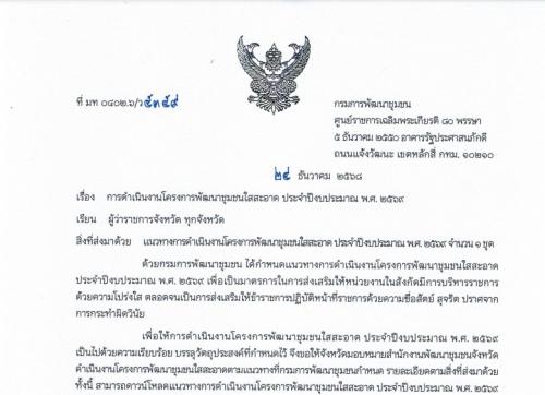 แจ้งแนวทางการดำเนินงานโครงการพัฒนาชุมชนใสสะอาด ประจำปีงบประมาณ พ.ศ. 2569